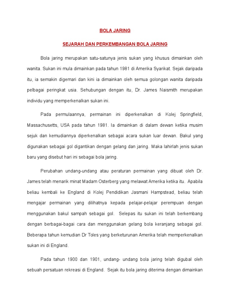 Ia bermula di sekolah sekolah Inggeris dan diperkenalkan oleh guru- guru dagang dan mubaligh- mubaligh. Di negara kita bola jaring diminati oleh semua golongan wanita. Add to my workbooks 0.
